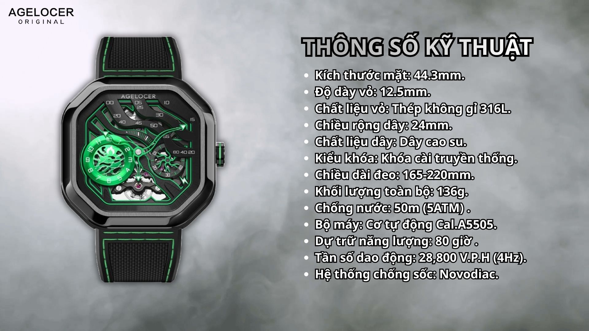 Agelocer Burning 5005J5 là một tuyên ngôn táo bạo trong nghệ thuật chế tác đồng hồ, lấy cảm hứng từ năng lượng bùng nổ của núi lửa. Mẫu thuộc dòng Volcano Series này phá vỡ mọi quy tắc với hệ thống hiển thị giờ độc lập ba kim, bố trí kim giờ, phút, giây tách rời, tạo nên một thử thách thiết kế đột phá. Mặt số lộ cơ skeleton được làm rỗng tinh xảo, thể hiện rõ nét bộ máy tự động Cal.A5505 với khả năng dự trữ năng lượng ấn tượng 80 giờ. Sự kết hợp giữa thiết kế futuristic (vị lai) và hiệu ứng dạ quang Super-LumiNova® siêu sáng đã biến 5005J5 thành một kiệt tác cơ khí hiện đại, khẳng định phong cách mạnh mẽ và cá tính của người đeo.