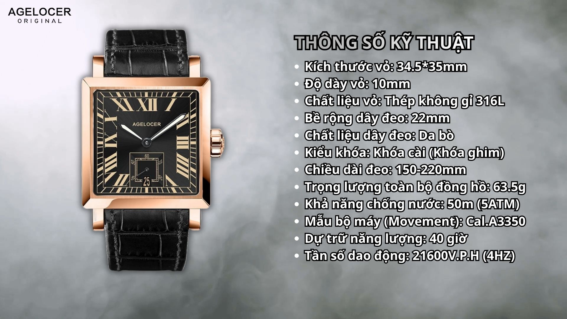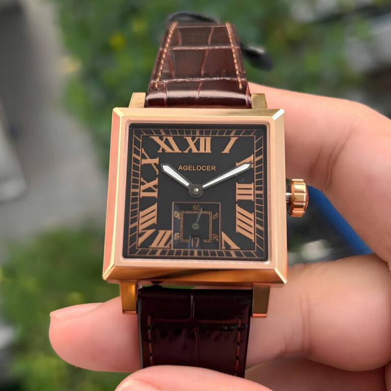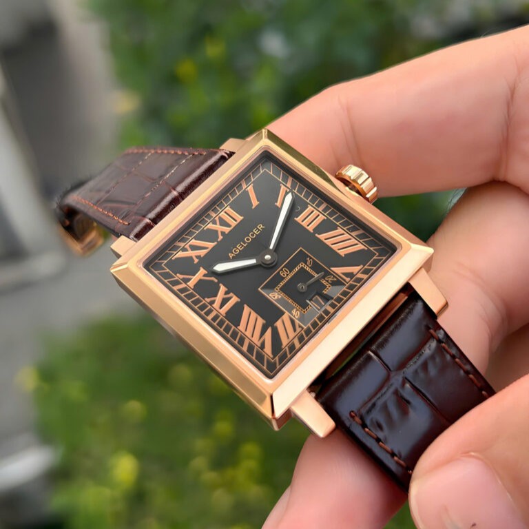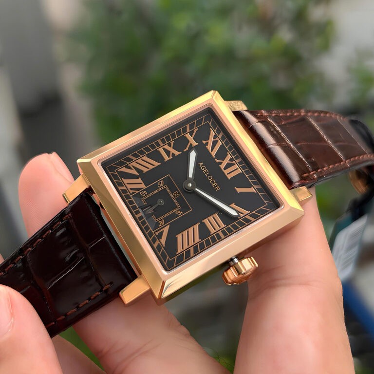 Agelocer Codex 3303D1 là biểu tượng của sự lịch lãm và mạnh mẽ, dành cho quý ông tìm kiếm phong cách chững chạc, độc đáo. Chiếc đồng hồ Thụy Sĩ này nổi bật với thiết kế mặt vuông (kích thước khoảng 35x35mm) đầy khỏe khoắn và táo bạo. Mặt số được chế tác tinh xảo, sử dụng các chữ số La Mã nghiêng sắc nét, tạo nên một tâm điểm thị giác đầy cuốn hút. Về chất liệu, vỏ đồng hồ được làm từ Thép không gỉ 316L bền bỉ, kết hợp với mặt kính Sapphire chống trầy xước. Mẫu 3303D1 sử dụng bộ máy Automatic chính xác và đi kèm dây da cao cấp. Với khả năng chống nước 50m, đây là lựa chọn hoàn hảo, pha trộn giữa vẻ đẹp truyền thống và sự phá cách hiện đại.