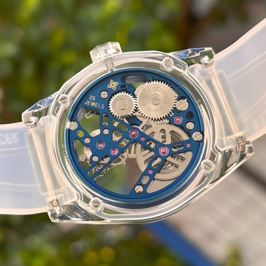 Người ta thường nói tới cái “chất” rất riêng mà mỗi người đàn ông hoặc phụ nữ sẽ có được trong đời. Và những người có cái chất rất riêng đó cũng sẽ là những người không chịu dừng lại ở những sản phẩm tầm thường. Họ sẽ chọn những sản phẩm được thiết kế và sản xuất cùng một thương hiệu. Đây chính là điều mà thương hiệu đồng hồ Agelocer Sapphire Tourbillon 9101S11 đã theo đuổi và may mắn là đã đạt được trong nhiều năm khi có thể tự thiết kế và sản xuất máy đồng hồ tại chính Thụy Sỹ. Hiện nay, hãng đang sở hữu những bộ máy như CAL.A4610 có dự trữ động năng 80 giờ. Đây là nền tảng để hãng ứng dụng và phát triển cho cỗ máy sau này như CAL.A4910, CAL.A9001.