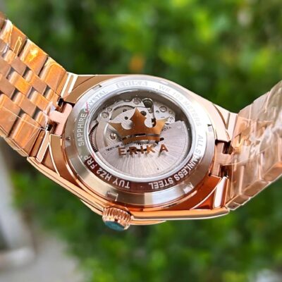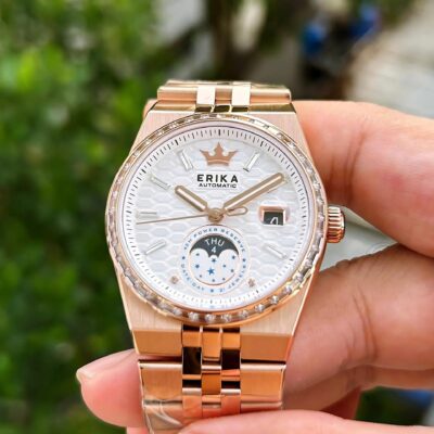 Erika Land Dweller là tuyên ngôn của sự lịch lãm, một kiệt tác cơ khí đến từ thương hiệu Erika. Chiếc đồng hồ size 40mm quốc dân này tỏa sáng với thiết kế thanh lịch, nổi bật bởi mặt số vân tinh xảo và kính Sapphire cao cấp. Ẩn bên trong là bộ máy cơ tự động Miyota 8215 bền bỉ, được bao bọc bởi vỏ Thép không gỉ 316L mạ PVD sang trọng. Với khả năng chống nước lên tới 100m, Erika Land Dweller khẳng định tinh thần sẵn sàng chinh phục mọi thử thách.Không chỉ là đồng hồ, mà còn là trợ thủ đắc lực của người đàn ông thành công và tinh tế. Erika Land Dweller sẽ mang tới sự thỏa mãn cho người mang nó trên tay.