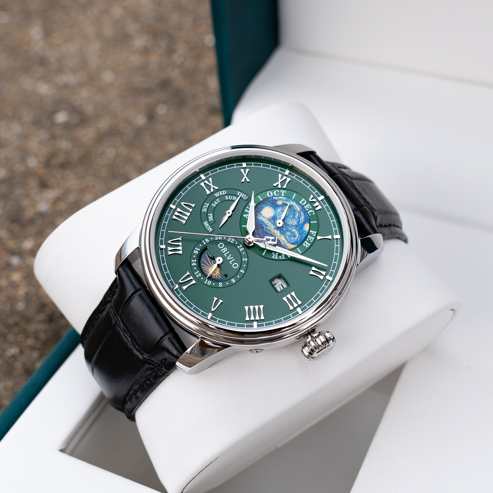 Thiết kế độc bản: Lấy cảm hứng từ kiệt tác hội họa “The Starry Night”, tạo điểm nhấn nghệ thuật khác biệt tại góc 12 giờ.