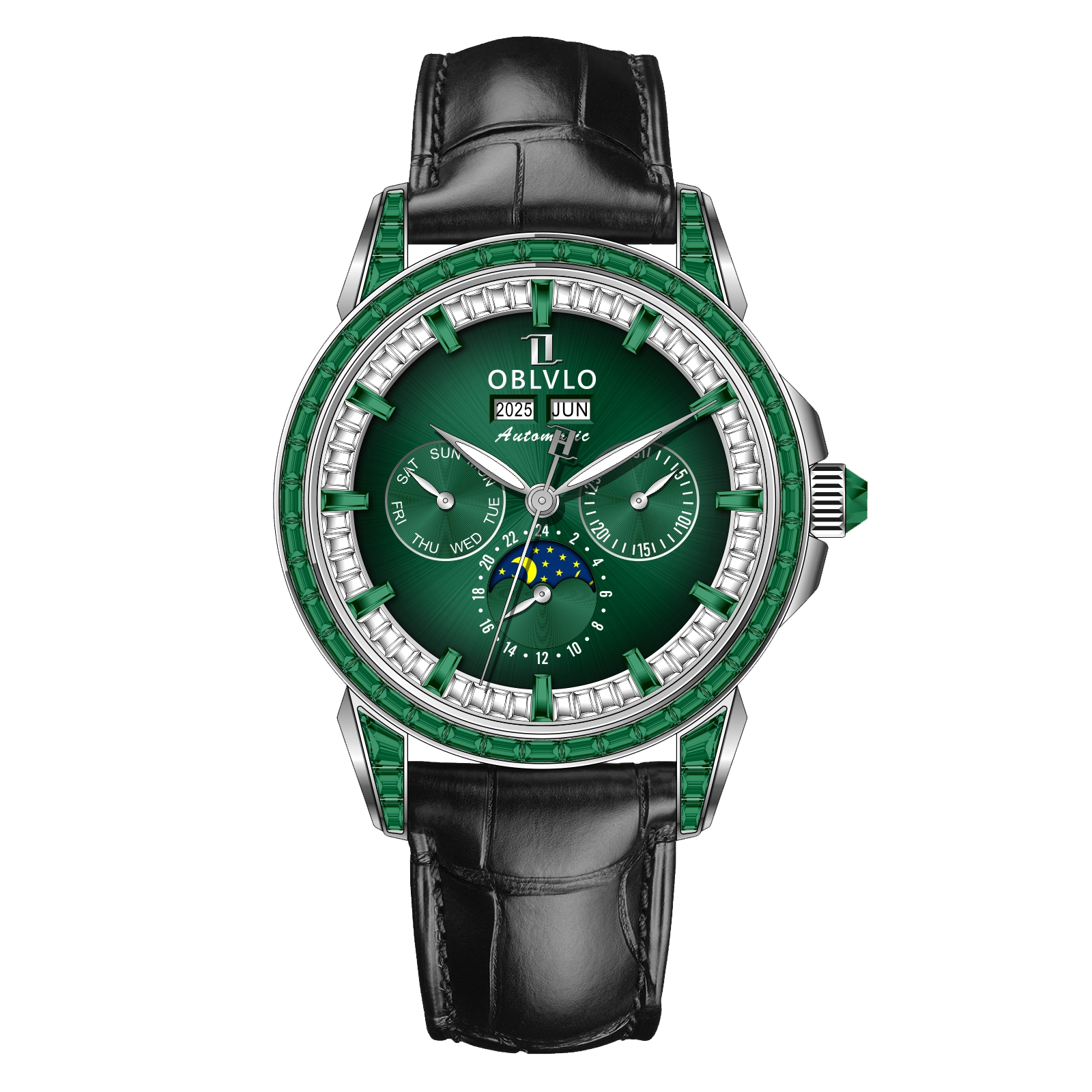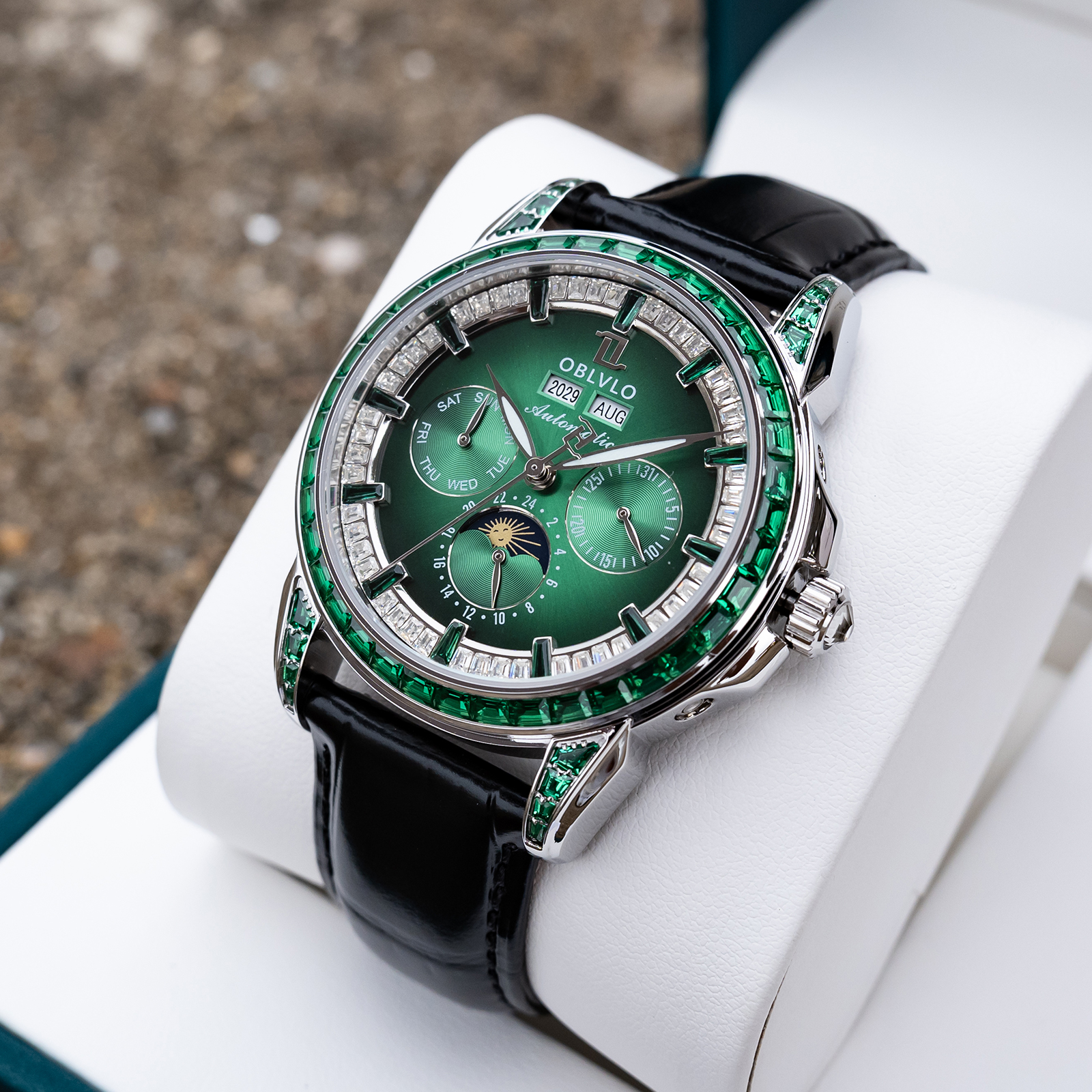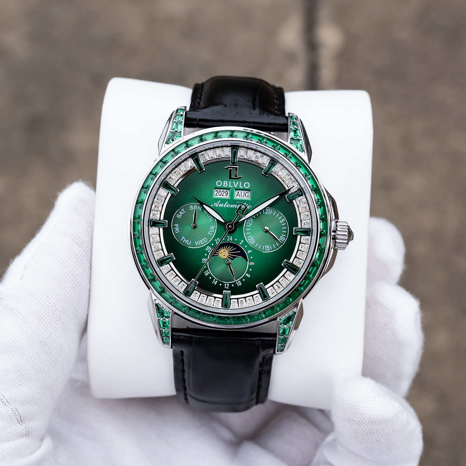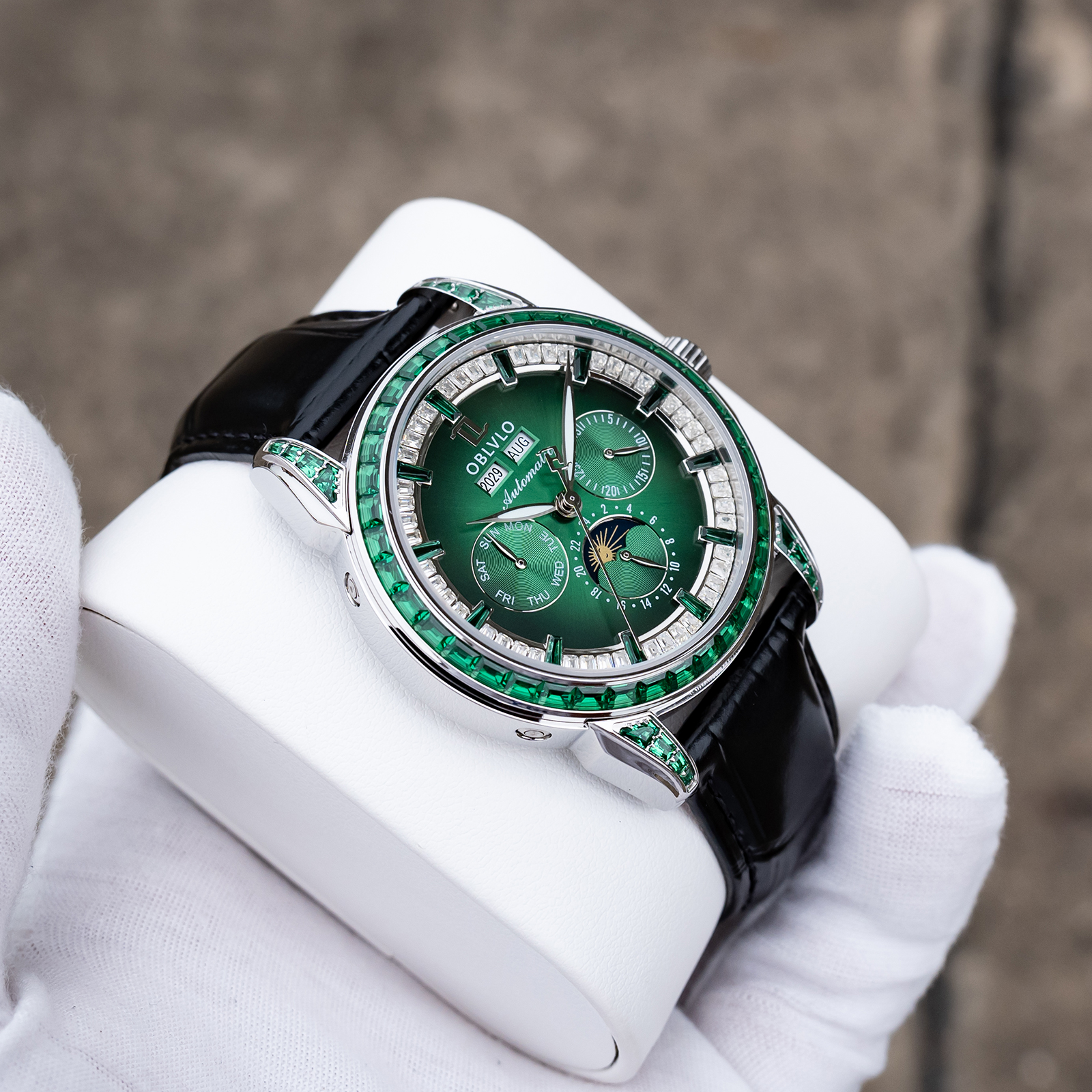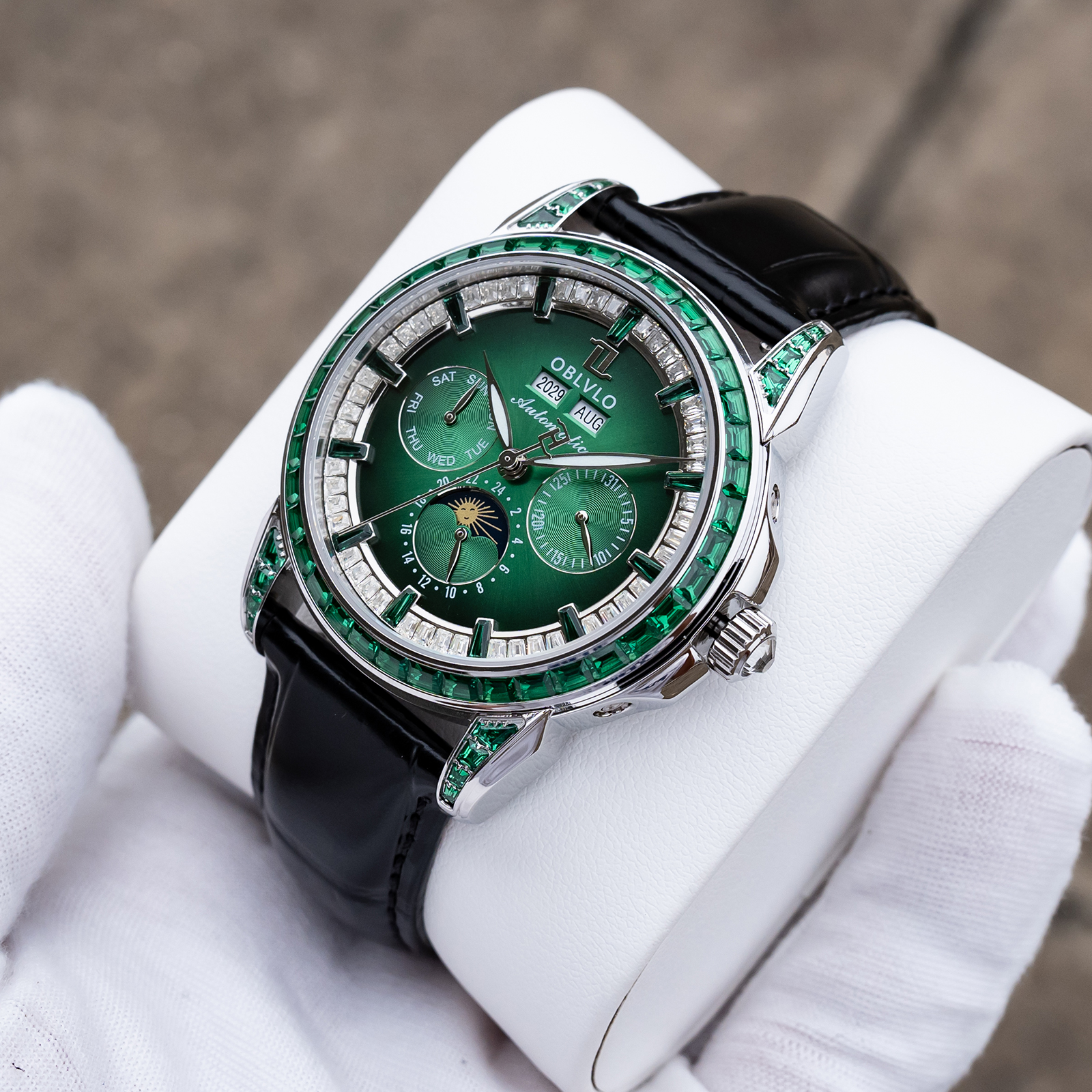 Nếu bạn đang tìm kiếm một chiếc đồng hồ không chỉ để xem giờ mà còn là một món trang sức xa xỉ, đẳng cấp thì OBLVLO GCM Series chính là siêu phẩm dành cho bạn. Với thiết kế đính đá Baguette tinh xảo, mẫu đồng hồ này tỏa sáng rực rỡ ở mọi góc nhìn.