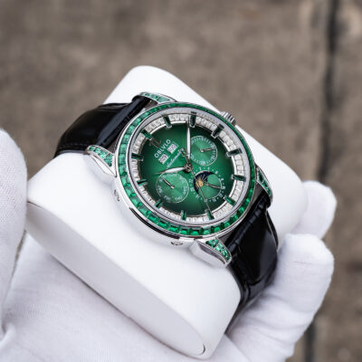 Vành Bezel Đính Đá: Toàn bộ vành đồng hồ và cọc số được đính đá Baguette cao cấp, tạo hiệu ứng lấp lánh sang trọng. Đặc biệt có phiên bản Rainbow (cầu vồng) cực kỳ thời thượng và nổi bật.