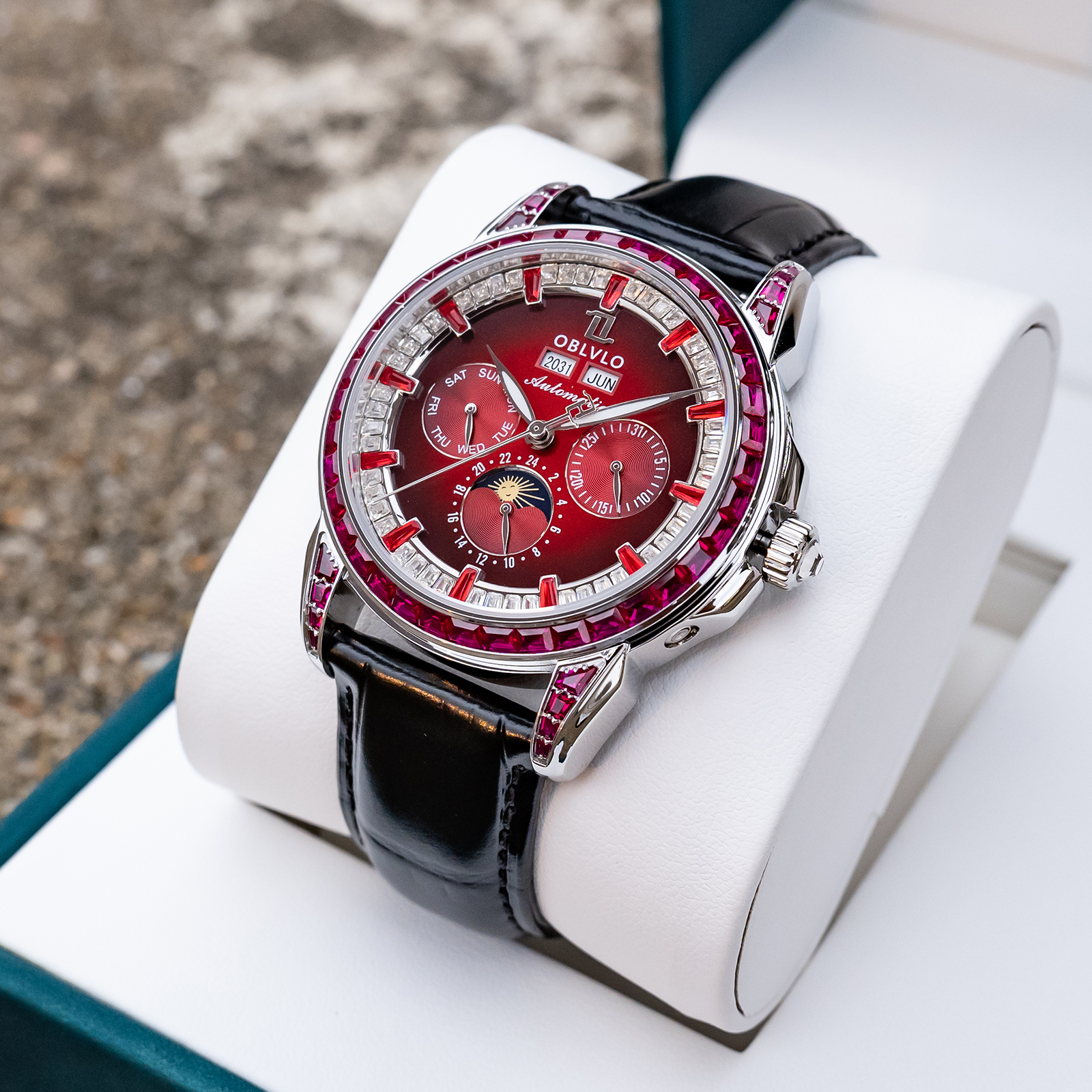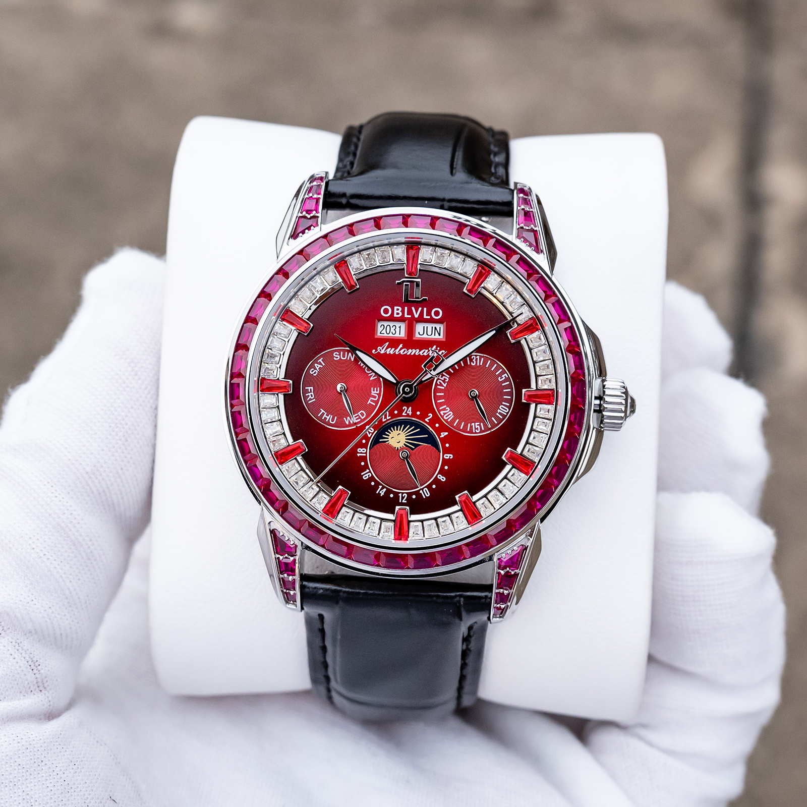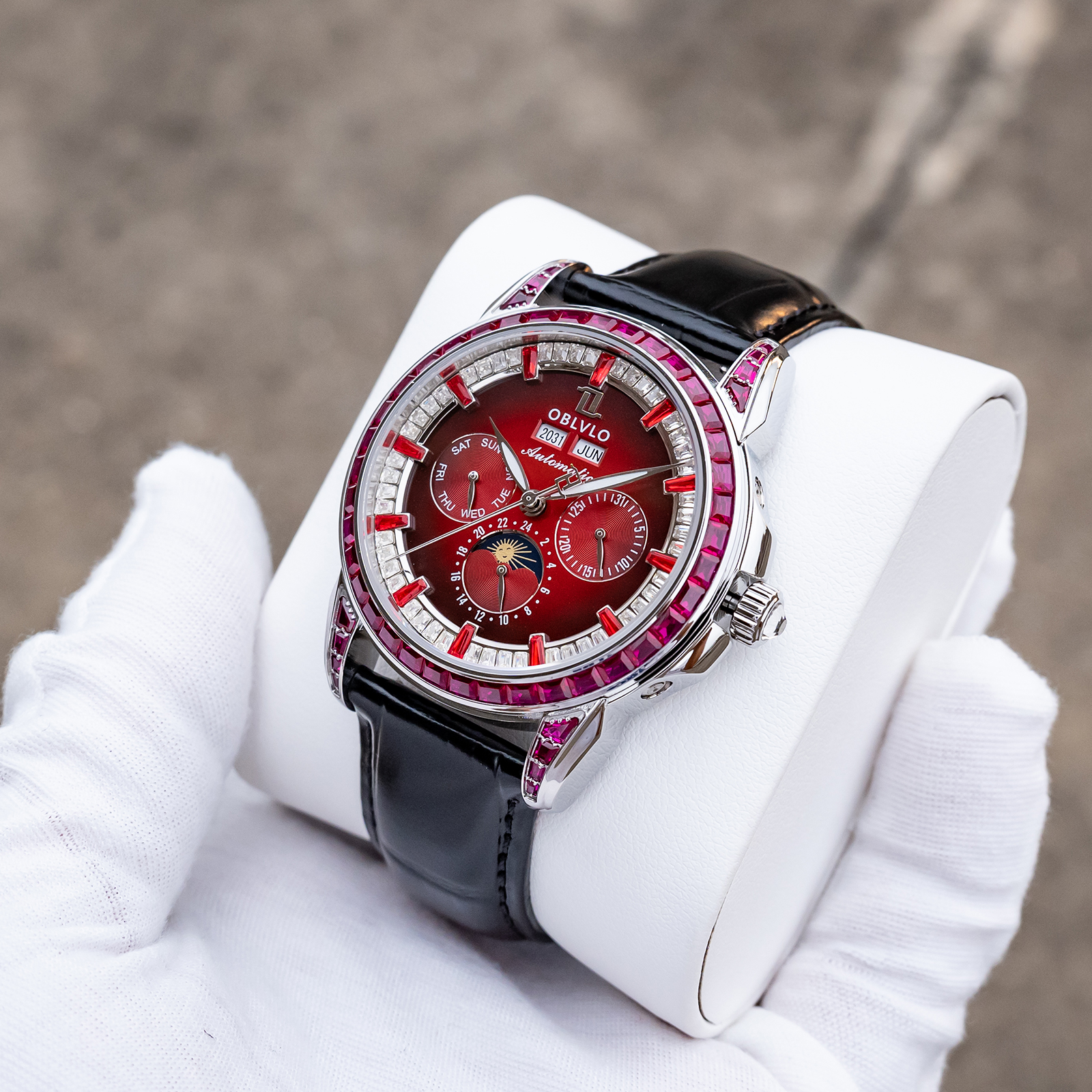Nếu bạn đang tìm kiếm một chiếc đồng hồ không chỉ để xem giờ mà còn là một món trang sức xa xỉ, đẳng cấp thì OBLVLO GCM Series chính là siêu phẩm dành cho bạn. Với thiết kế đính đá Baguette tinh xảo, mẫu đồng hồ này tỏa sáng rực rỡ ở mọi góc nhìn.