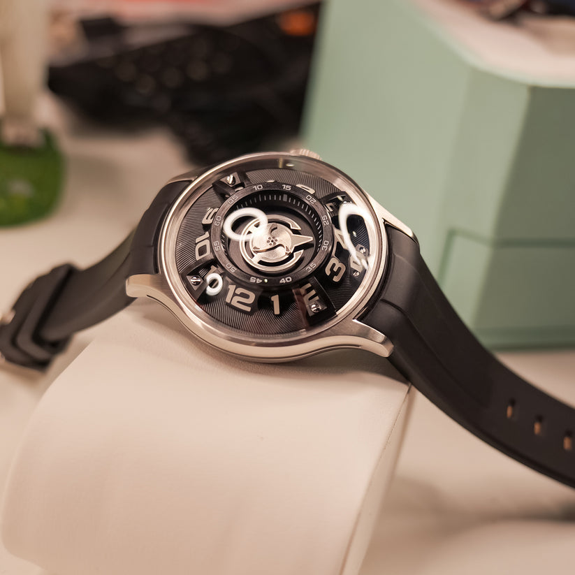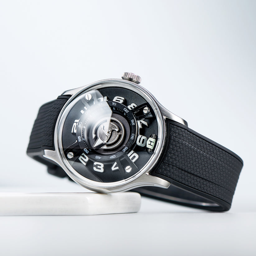 Bảo vệ mặt đồng hồ là mặt kính sapphire crystal, được biết đến với khả năng chống xước và độ trong suốt. Hình dạng mặt kính, gợi nhớ đến bong bóng, tạo thêm nét hiện đại cho thiết kế của đồng hồ, khiến nó khác biệt so với những chiếc đồng hồ thông thường.